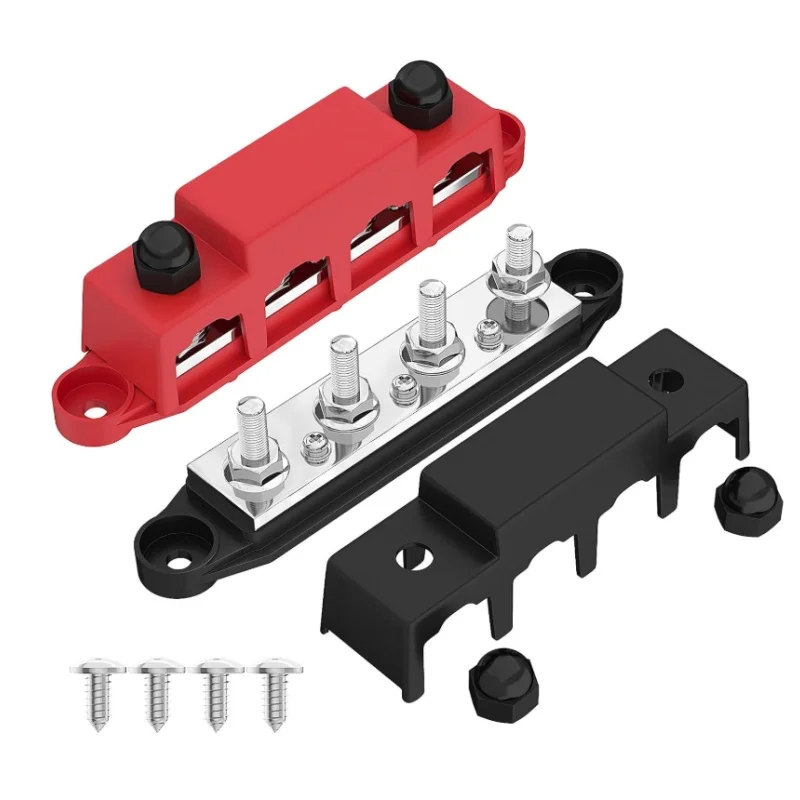 PinXin 12V-48V 250A Bus Bar Terminal Battery Power Distribution Block With Cover M8 M10 Screw 4 for Automobile Boat RV Truck
