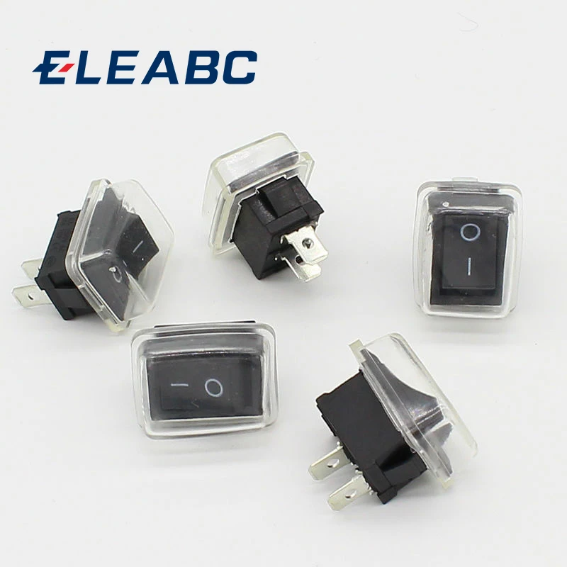 5Pcs/Lot Black Push Button Mini Switch 6A-10A 110V 250V 2Pin Snap-in On/Off Rocker Switch 21MM*15MM with waterproof cover Black