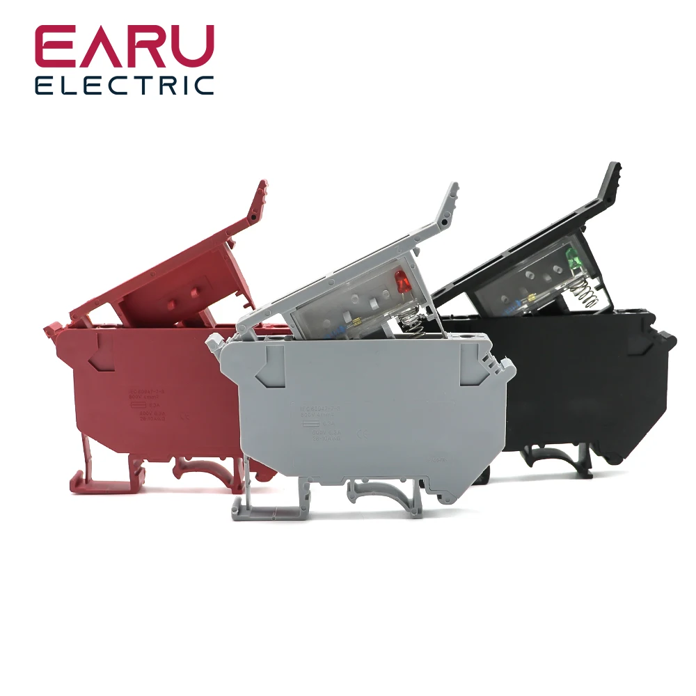 10Pcs/lot Din Rail Terminal Blocks UK-5-HESI Black Connector Screw Fuse Terminal Block Connector Screw Fuse Holder Conductor