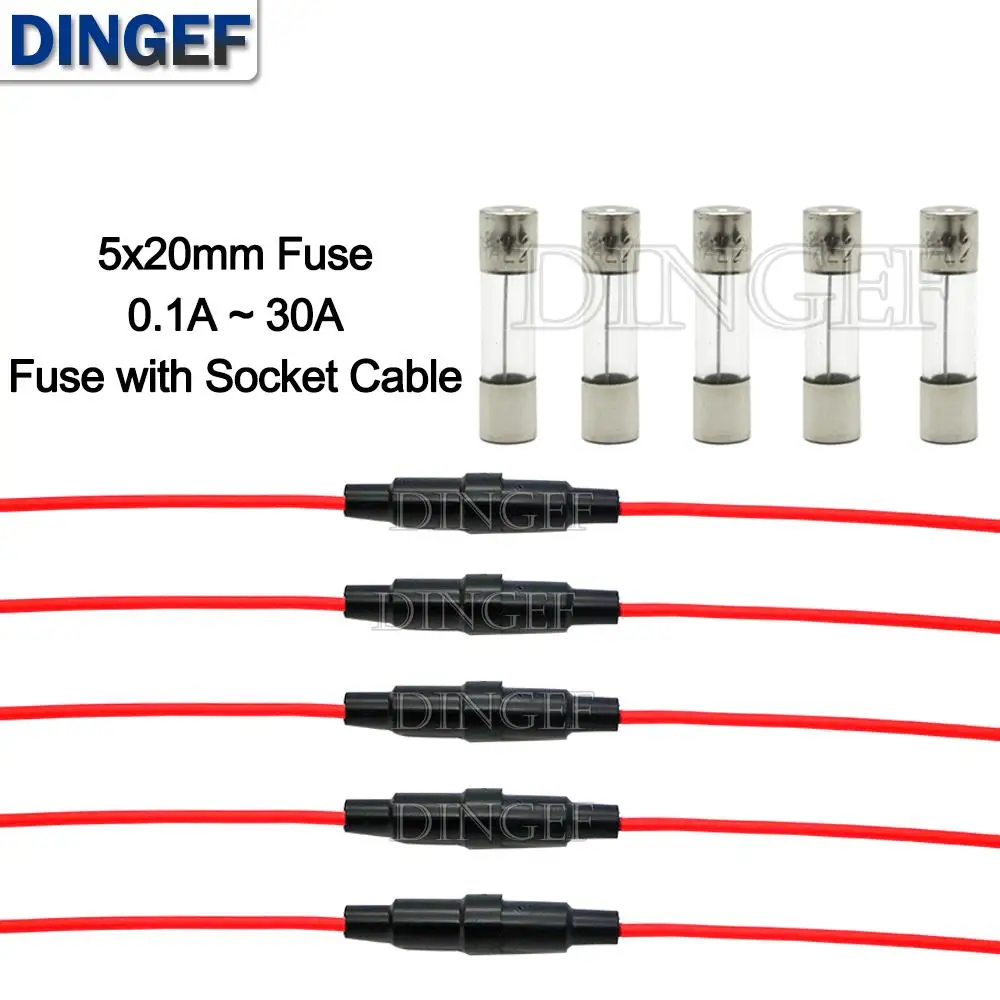 10PCS 5PCS 5*20mm Glass Fuse Holder Screw Type 5X20mm with 5PCS 22AWG Wire Cable 5X20MM Glass Fuse Tube (5PCS+5PCS=10PCS) 5set