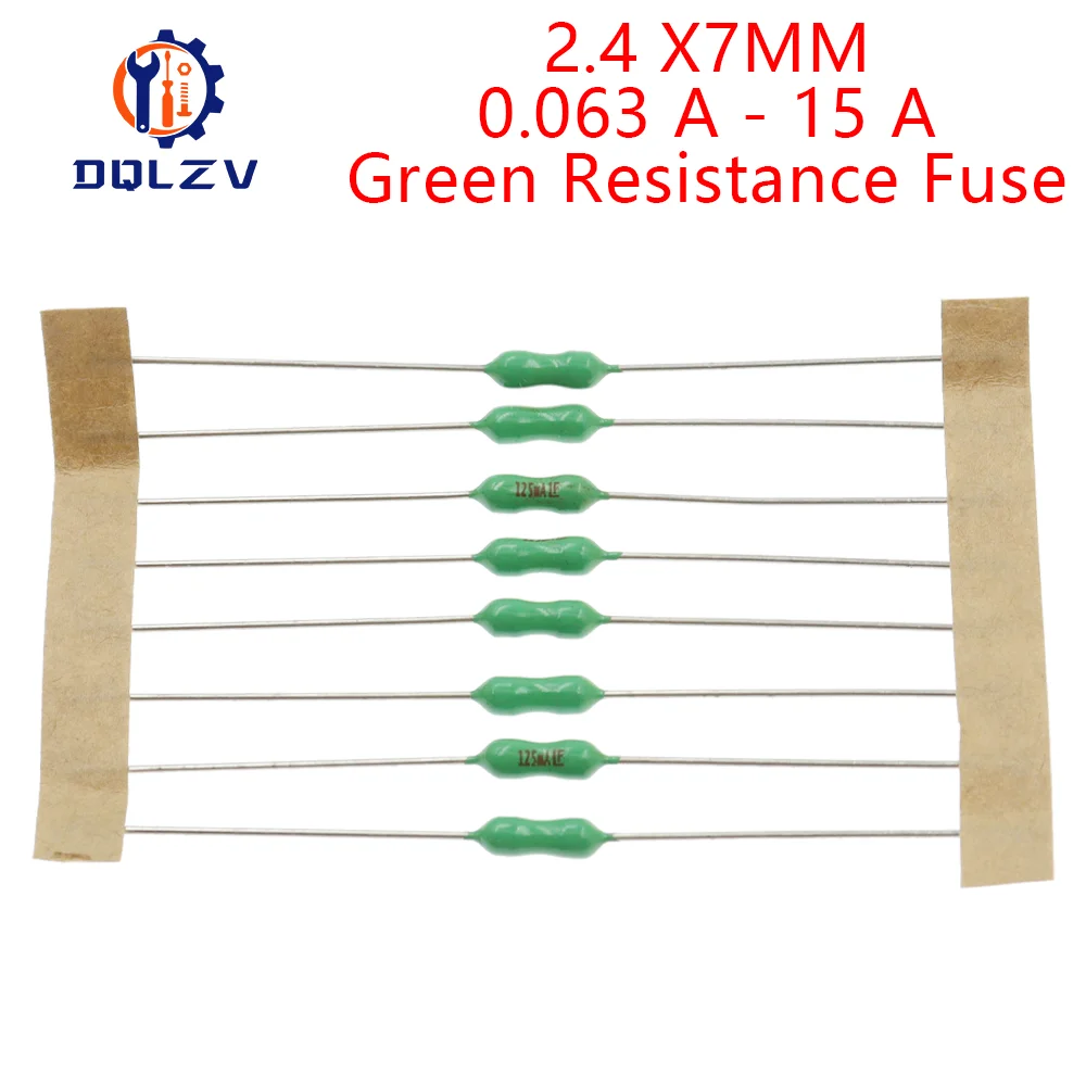 2.4*7mm Axial Lead Green Fuse 125/250V 2.4 X 7 63mA 125mA 250mA 1A 2A 3A 4A 5A 7A 8A 10A Fast Blow PICO Resistance Fuse  Read more