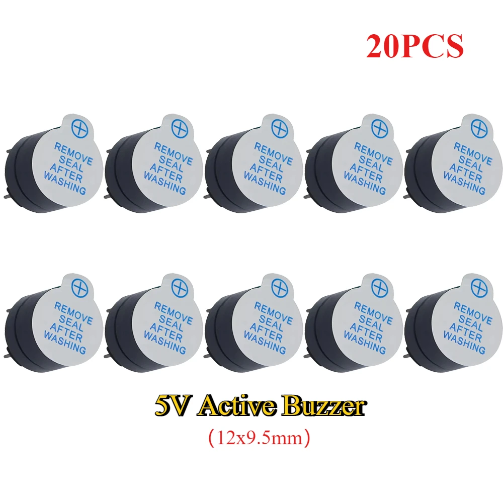 20pcs Active Buzzer 5V Magnetic Long Continuous Beep Tone 12*9.5mm Mini Active Piezo Buzzers for Arduino Mini Plug Speaker