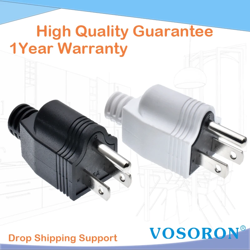 NEMA 5-15P Receptacle US DIY Rewireable Grounding Male Power Plug 125V-15A White /Black