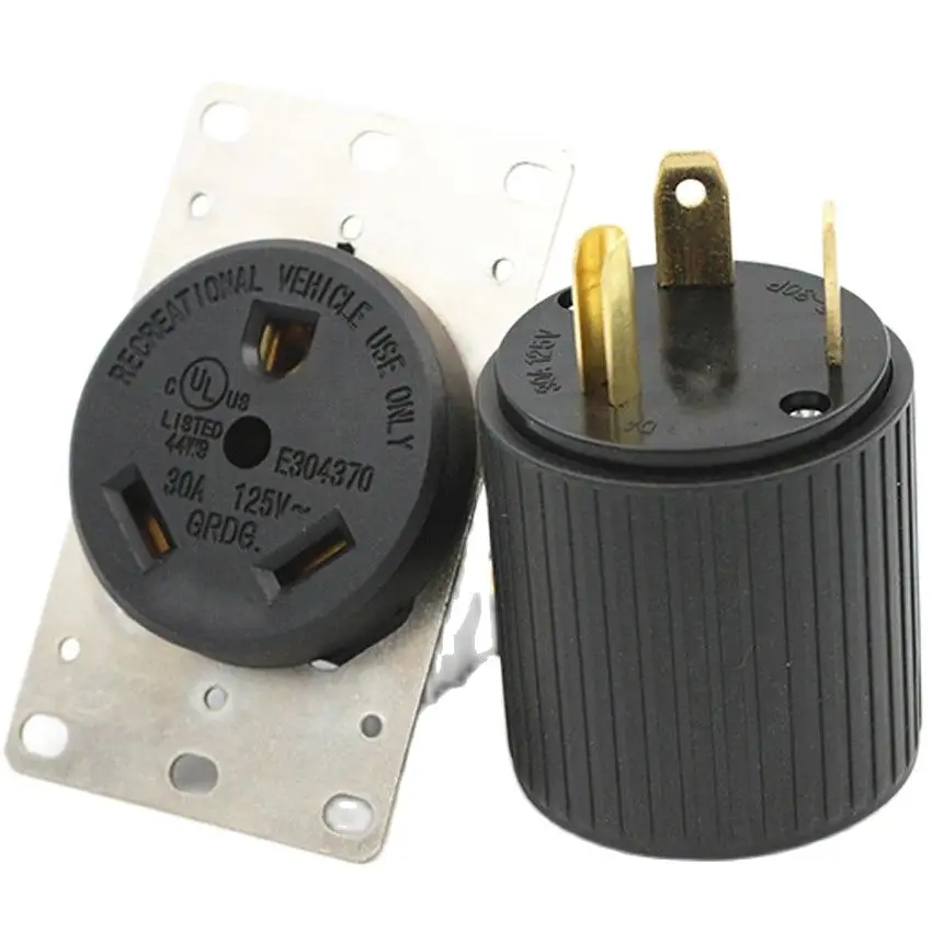 Black American NEMA TT-30R 30P US Receptacle Panel Outlet Generator RV Anti-off industrial power socket wire connector 30A