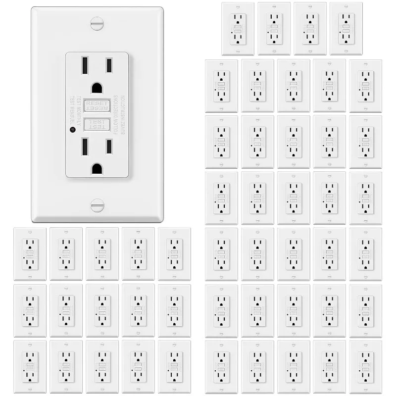 50 Pack GFCI Outlets 15 Amp, Non-Tamper Resistant, Decor GFI Receptacles with LED Indicator, Ground Fault Circuit Interrupter