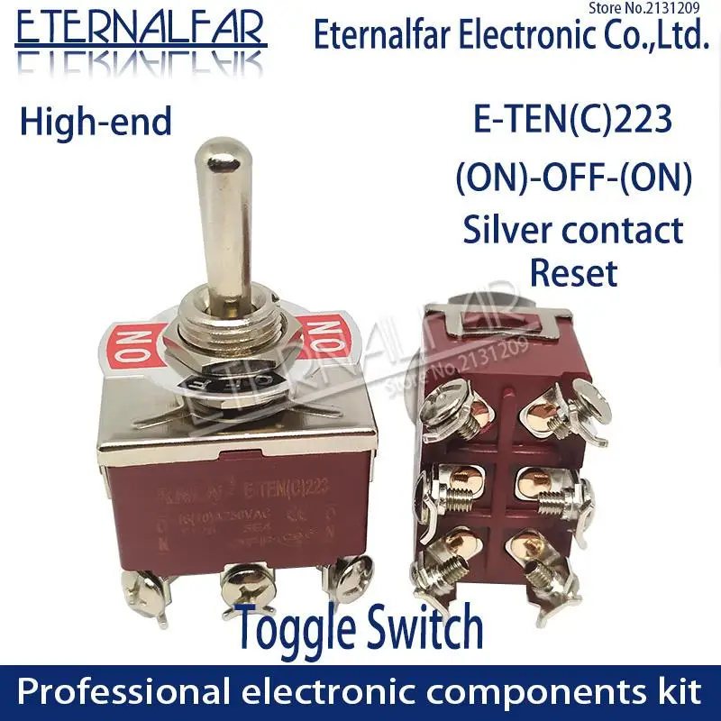 High-end E-TEN223 Quality Silver Contact DPST 12MM 16A 250V AC (ON)-OFF-(ON) 6 Pin Reset Rocker Toggle Slide Switch Waterproof