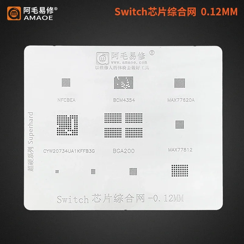 Amaoe BGA200/BCM4354/MAX77620A/NFCBEA Tin Template for Nintend Switch Steel Mesh BGA Reballing Stencil