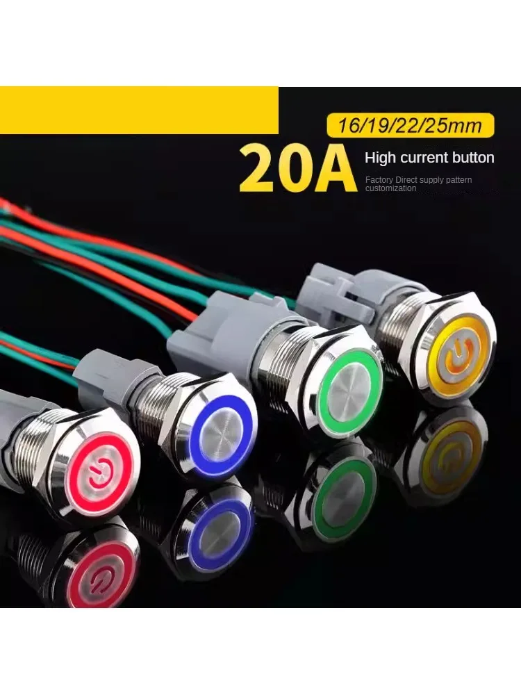 High current metal button 16/22mm high-power waterproof self resetting self-locking steel switch 20A 15A 10A push button