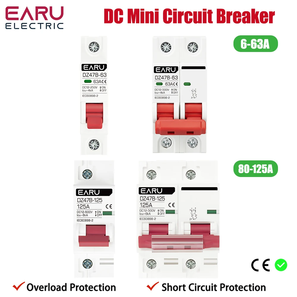 1P 2P DC MCB 12V 24V 48V Circuit Breaker Battery Car Protector DZ47 DC Positive Negative Pole Rotection Protect Switch Isolator