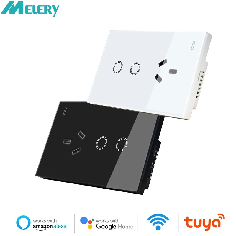 Melery AU Smart Tuya WiFi Light Switch. Argentina Plug, Australia Outlet, Touch Glass Wall Socket. Alexa & Google Home Remote