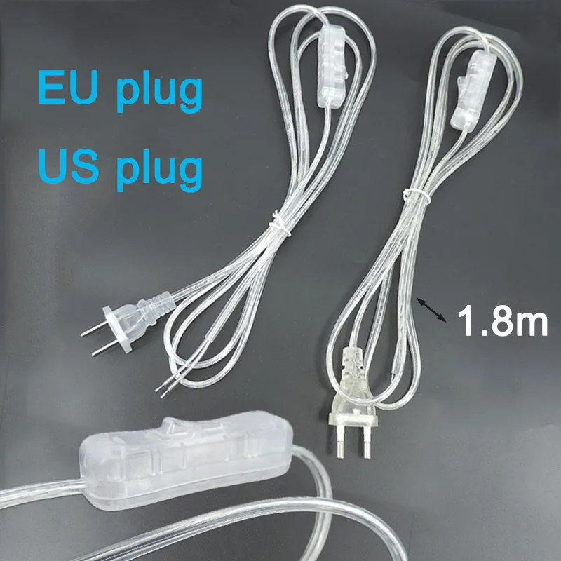 303 Switch Power Cord Transparent AC Power extend Cord US EU plug Extension Cable Wiring Desktop for LED lamp