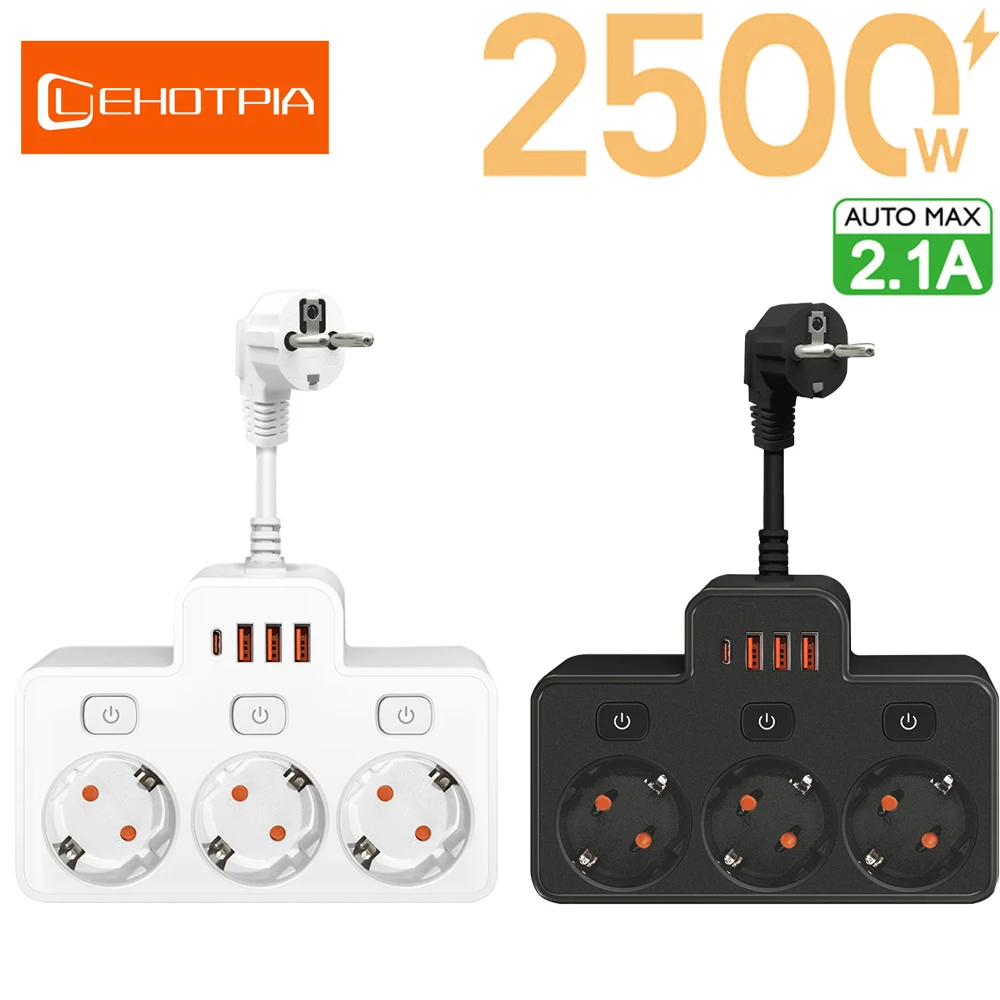 EU Korea AC Plug Power Strip Wall Mounted Independent Switch Multitap Network Filter With USB Ports Charg Network Filter Adapter