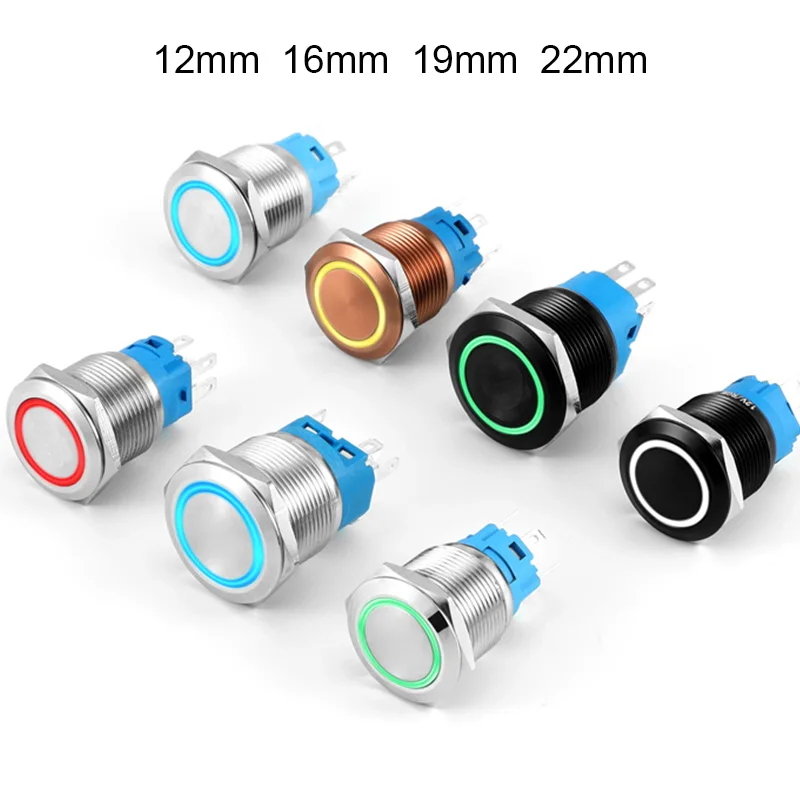 Push Button Switch Electric Waterproof Power 3/12/24/220v Led Light Momentary 12/16/19/22mm Contacts Pressure Switches Latching