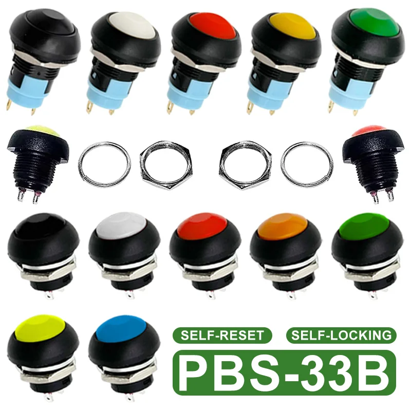 5/20Pcs PBS-33B Round Push Button Switch 12mm Momentary Self-Reset Self-Locking 2Pin Mini Electric Power Switch ON OFF