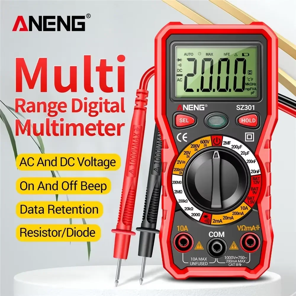 ANENG SZ301 Digital Multimeter Multi range AC/DC Voltage Current Resistance Automatic Ohm Current Meter Capacitance Tester Tools