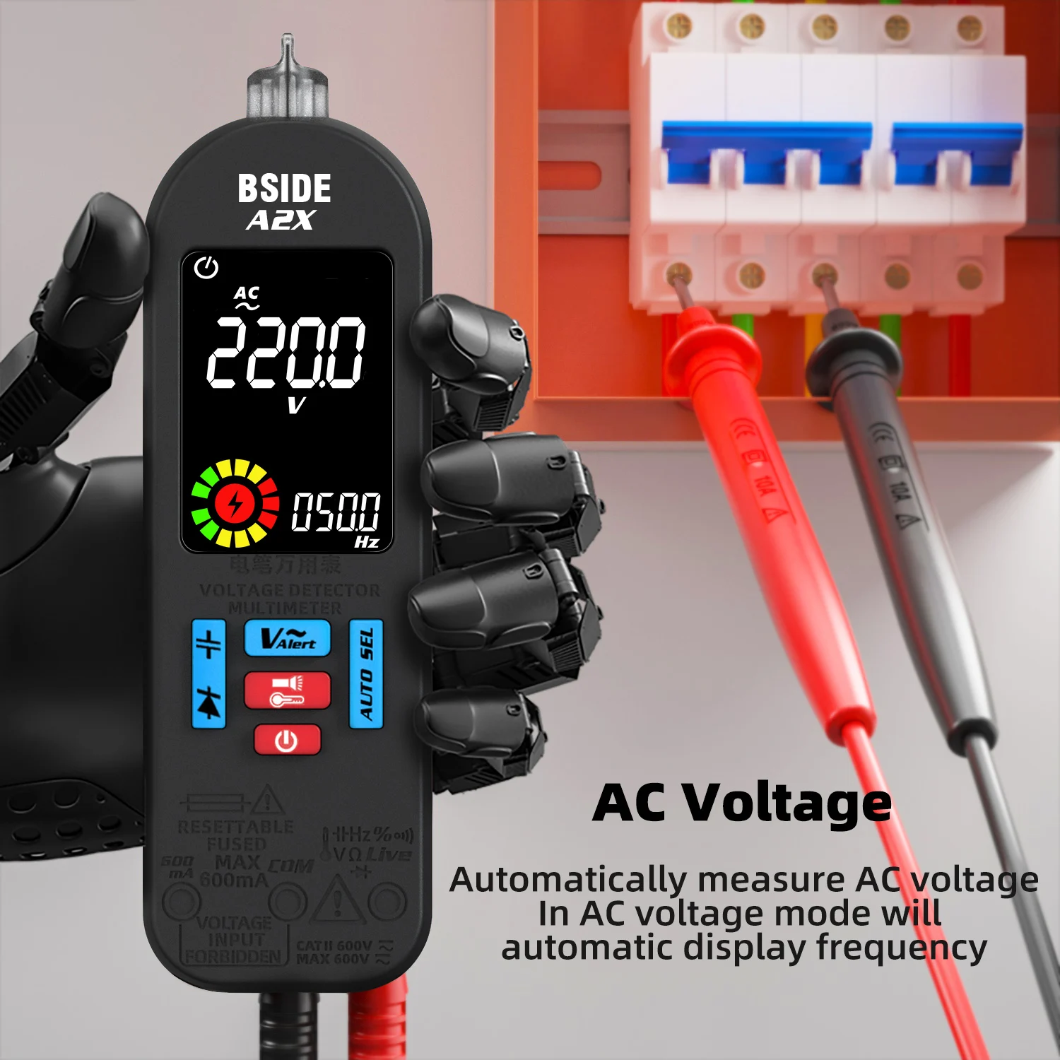 BSIDE A2X Smart Digital Multimeter Professional Automatic Voltage Tester Handheld VFC AC DC Diode Capacitor Resistance