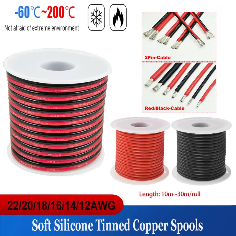 1~50m Flexible Silicone Cable High Temperature 28 26 24 22 20 18 16 15 14 13 12 10 AWG Heat-resistant Car Battery Copper Wire  Read more