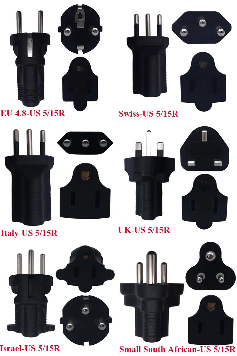 1PCS Black USA 5-15R female to US AU UK EU 4.0/4.8mm swiss Italy Israel Sri Lanka India male travel adapter plug USA Power Plug