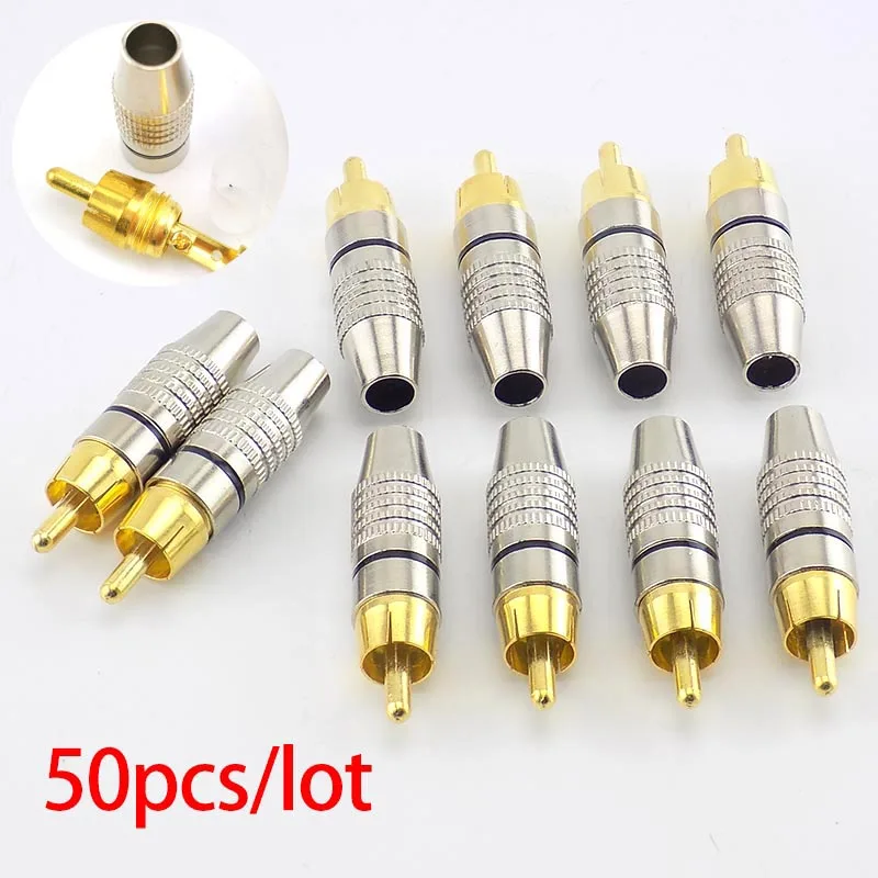50X RCA Male Plug Connector Non Solder Audio Video Locking Plug Adapter solderness adaptor Cable for CCTV Video Camera Security