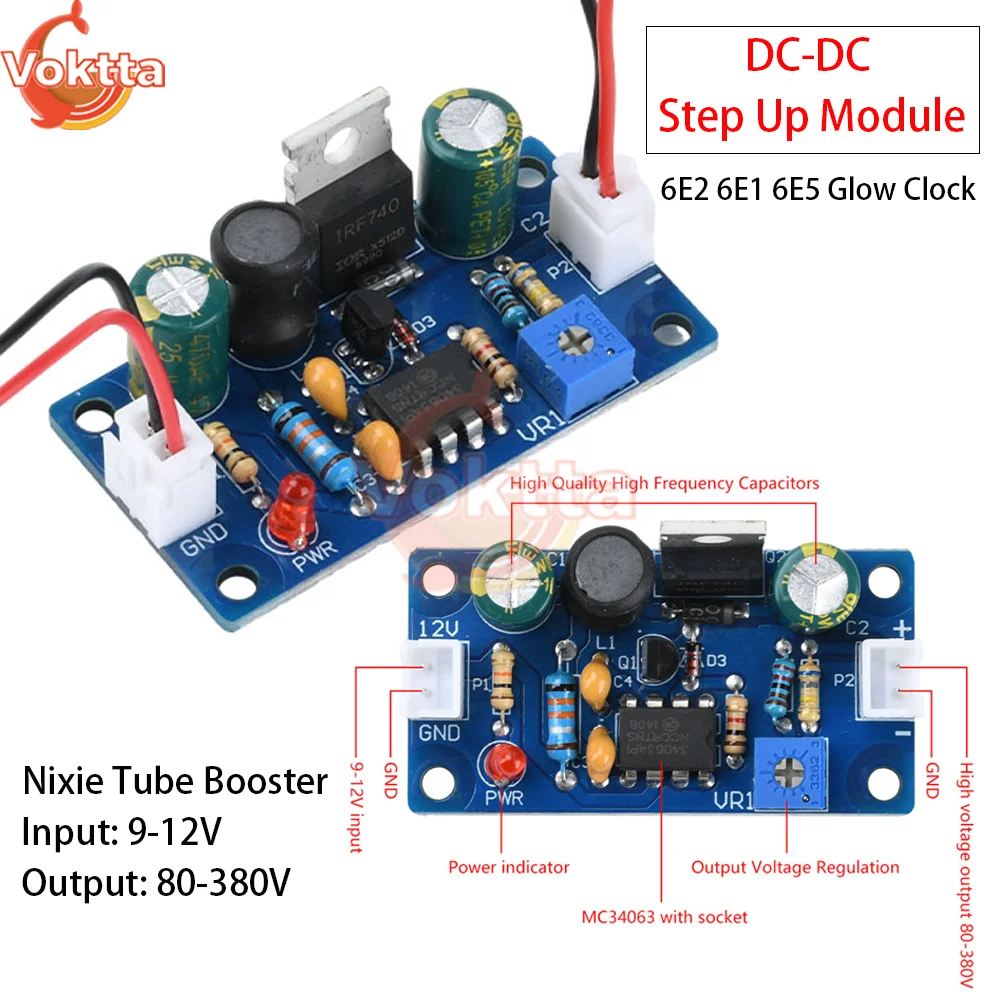 DC-DC Step Up Boost Converter 9-12V to 150-280V Adjustable Booster Module 6E1 6E2 6E5 Glow Clock MC34063 Nixie Tube Power Driver