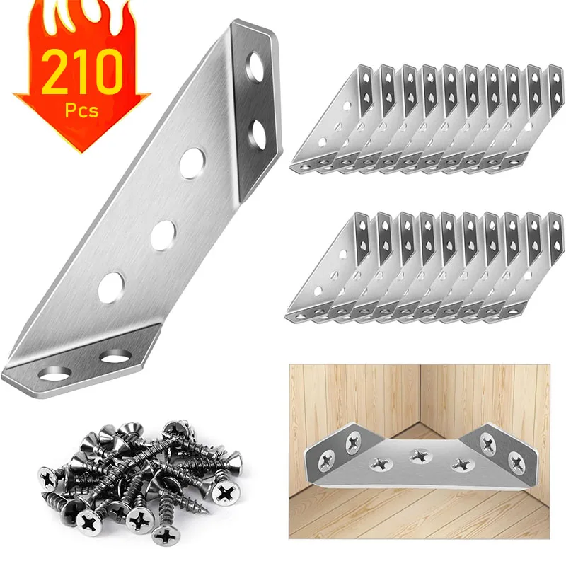 ​​Stainless Steel Corner Brackets with Screws 90° Right Angle for Wood Furniture Shelves Cabinets Corner Connector 7-210PCS