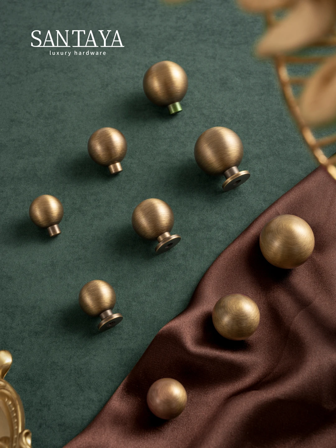 Santaya Antique Brass Round Cabinet Handles Drawer Knobs Solid Bronze Knob Retro Brass Kitchen Hardware for Cupboard Furniture
