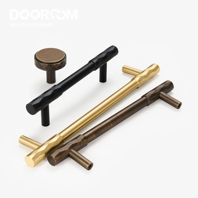 Dooroom Brass Furniture Handles Modern Hammered Long Pulls Cupboard Wardrobe Dresser Shoe Box Drawer Cabinet Round Knobs