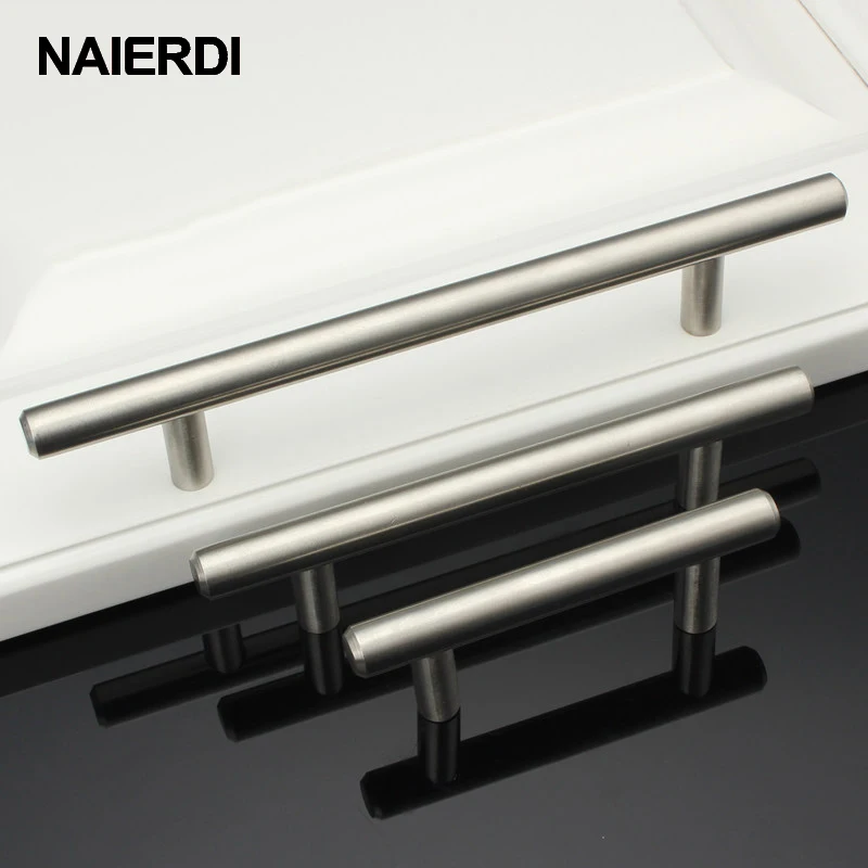NAIERDI 4" ~ 24'' Stainless Steel Handles Diameter 12mm Kitchen Door Cabinet T Bar Straight Handle Pull Knobs Furniture Hardware