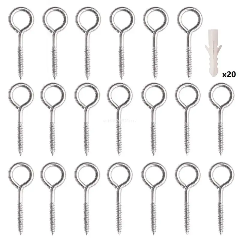 20 PCS Eye-Shape Ring Hooks Metal Cup Hooks Stainless Steel Screw Eye Hooks ​Household Threaded Hook Set  Read more