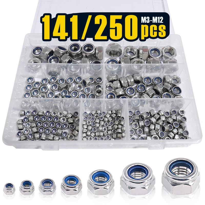 20/ 141/ 250 Pcs 304 Stainless Steel Metric Lock Nut Assortment Kit Perfect for Lock Washers, Nylon Insert Locknut M3-M12  Read more