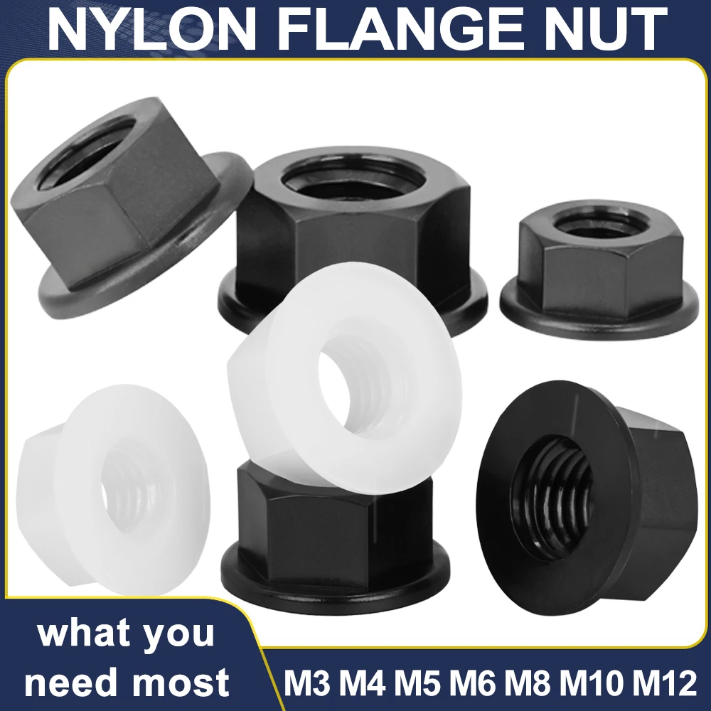 DIN6923 Black White Flat Bottom PA66 Hex Plastic Nylon Electricity Insulation Hexagonal Hex Head Flange Nut M3M4M5M6M8M10M12  Read more