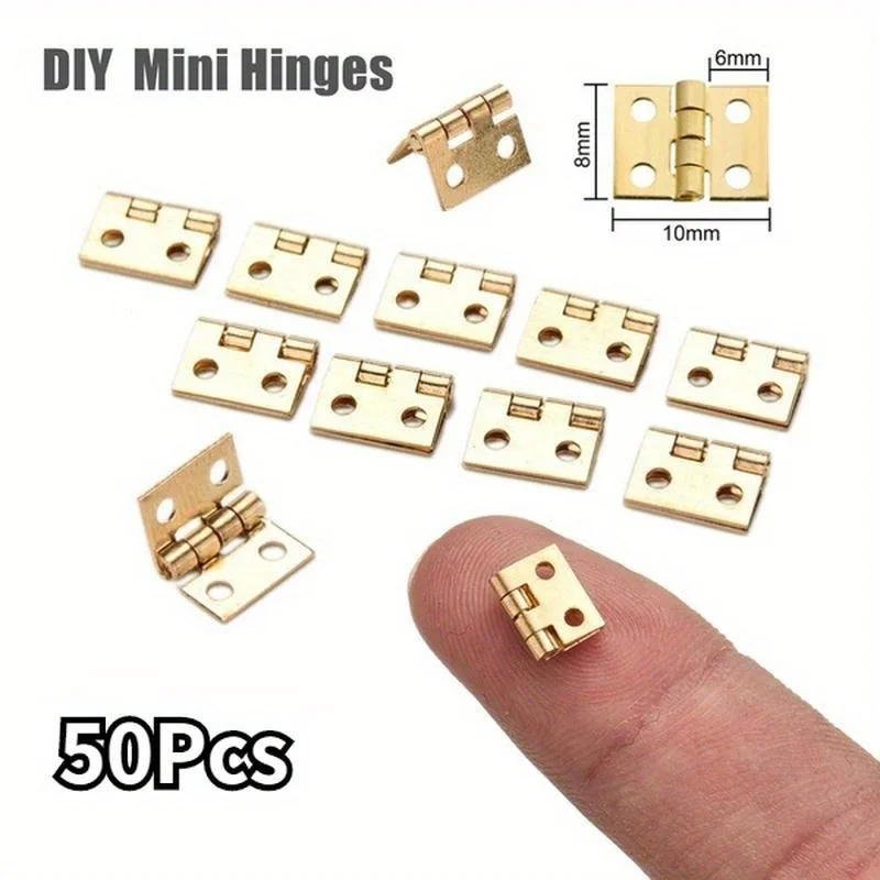 50Pcs Tiny Golden Mini Small Metal Hinge for 1/12 House Miniature Cabinet Furniture Fittings for Cabinets 10 X 8mm Home Hardware