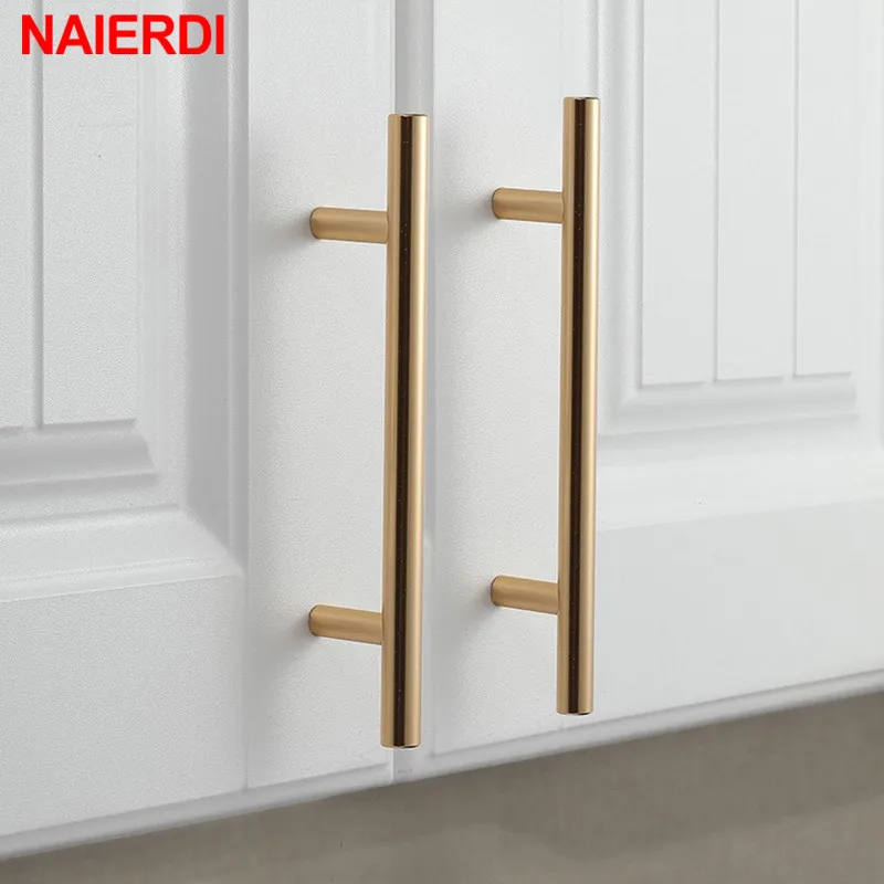 NAIERDI Black Golden Cupboard Handle Brushed Stainless Steel Kitchen Cabinet Door Knob Furniture Handle Drawer Pull Hardware