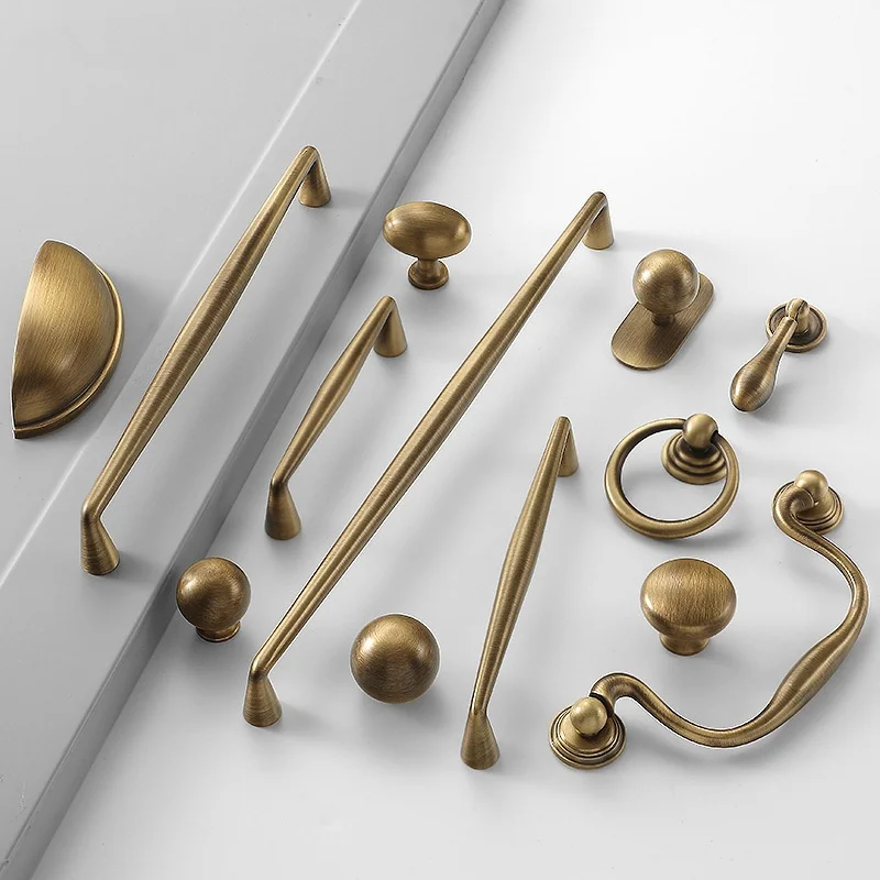 Vintage Light Luxury Brass Furniture Handles Long Strip Cabinet Handles Round Door Drawer Knobs Kitchen Wardrobe Cupboard Pulls