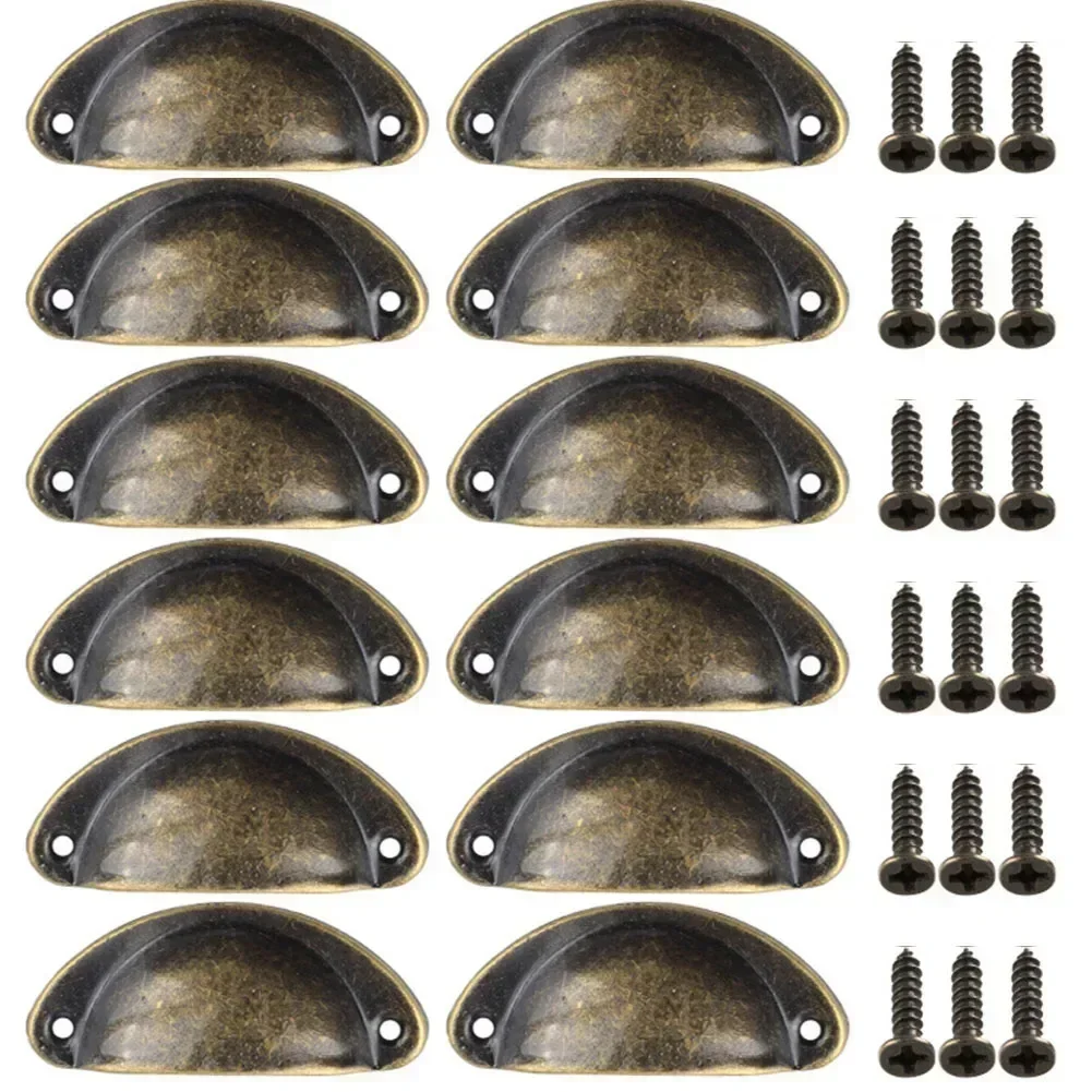 12PCS Retro Kitchen Drawer Cabinet Door Handle Furniture Knobs Handware Cupboard Iron Antique Shell Pull Handles