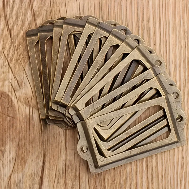 10pcs Vintage Antique Brass Label Holders for Drawer Cabinet Frames with Screws, Classic Design Iron Office Storage Supply Tags