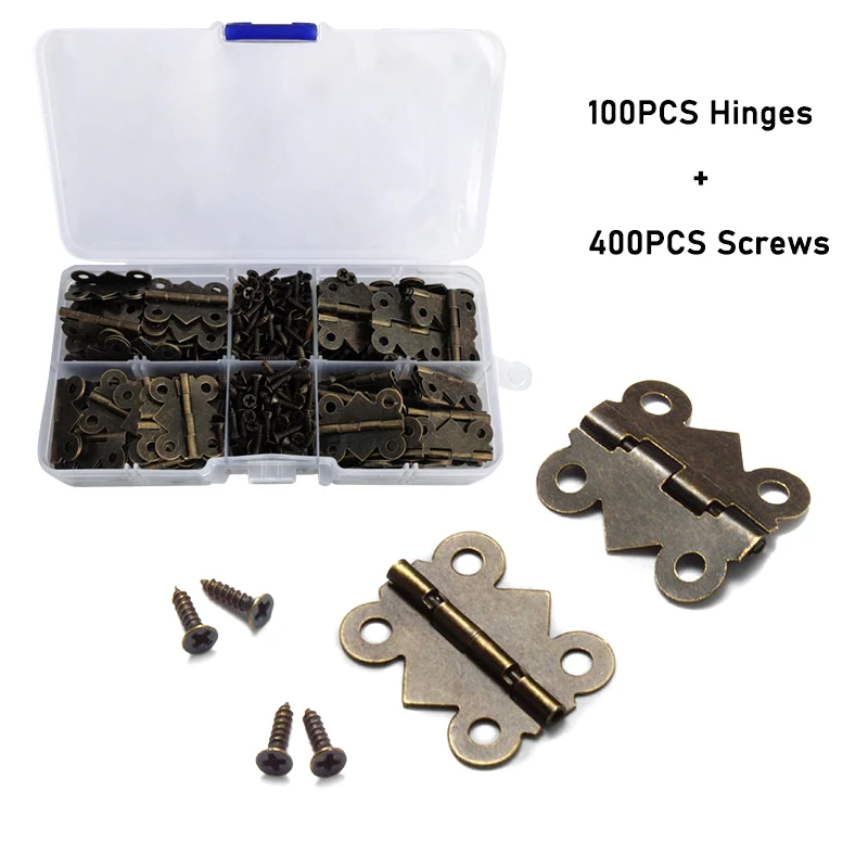 100PCS Mini Hinges with 400pcs Screws M2x8 Antique Bronze Vintage Wooden Jewelry Box Butterfly Iron Hinge 24x21mm