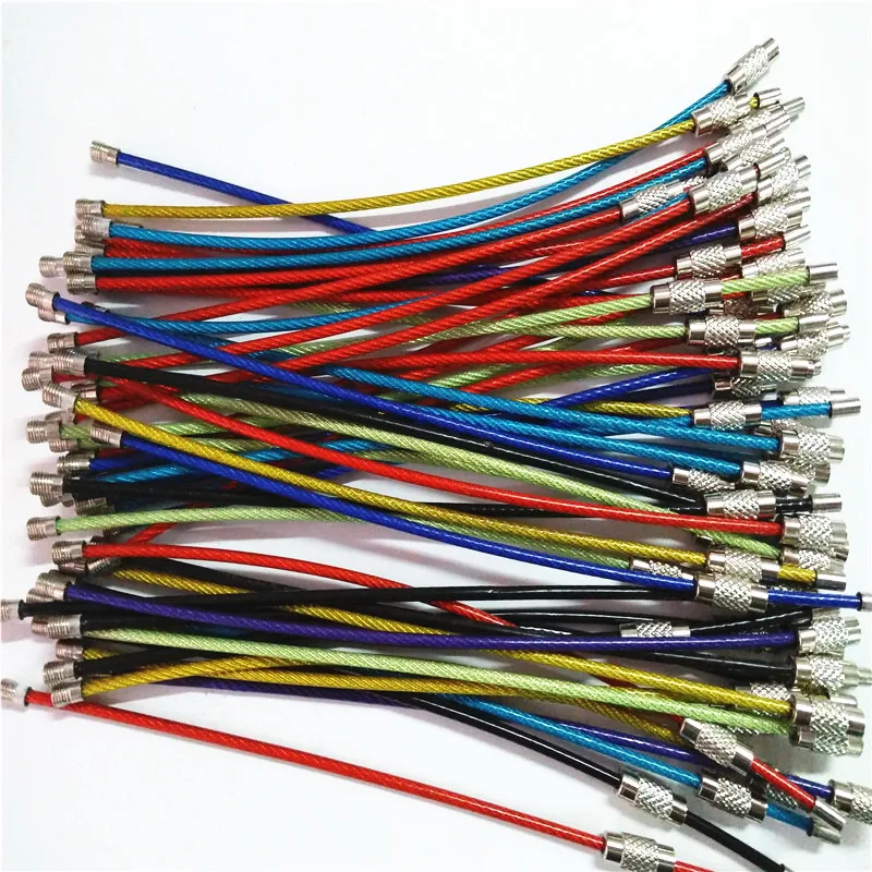 1.5mm 10/15/20CM Stainless Steel Keychain Tag Rope Wire Cable Loop Screw Lock Gadget Ring Key Keyring Circle Camp Rope Fittings