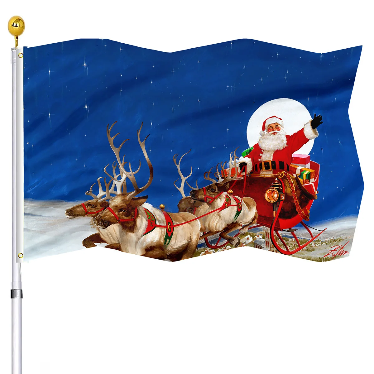 Garden flag Xmas Elk & Sled Banner Flags Santa House Indoor Party Outdoor Living Room Christmas Decorations Flag for Women Kids