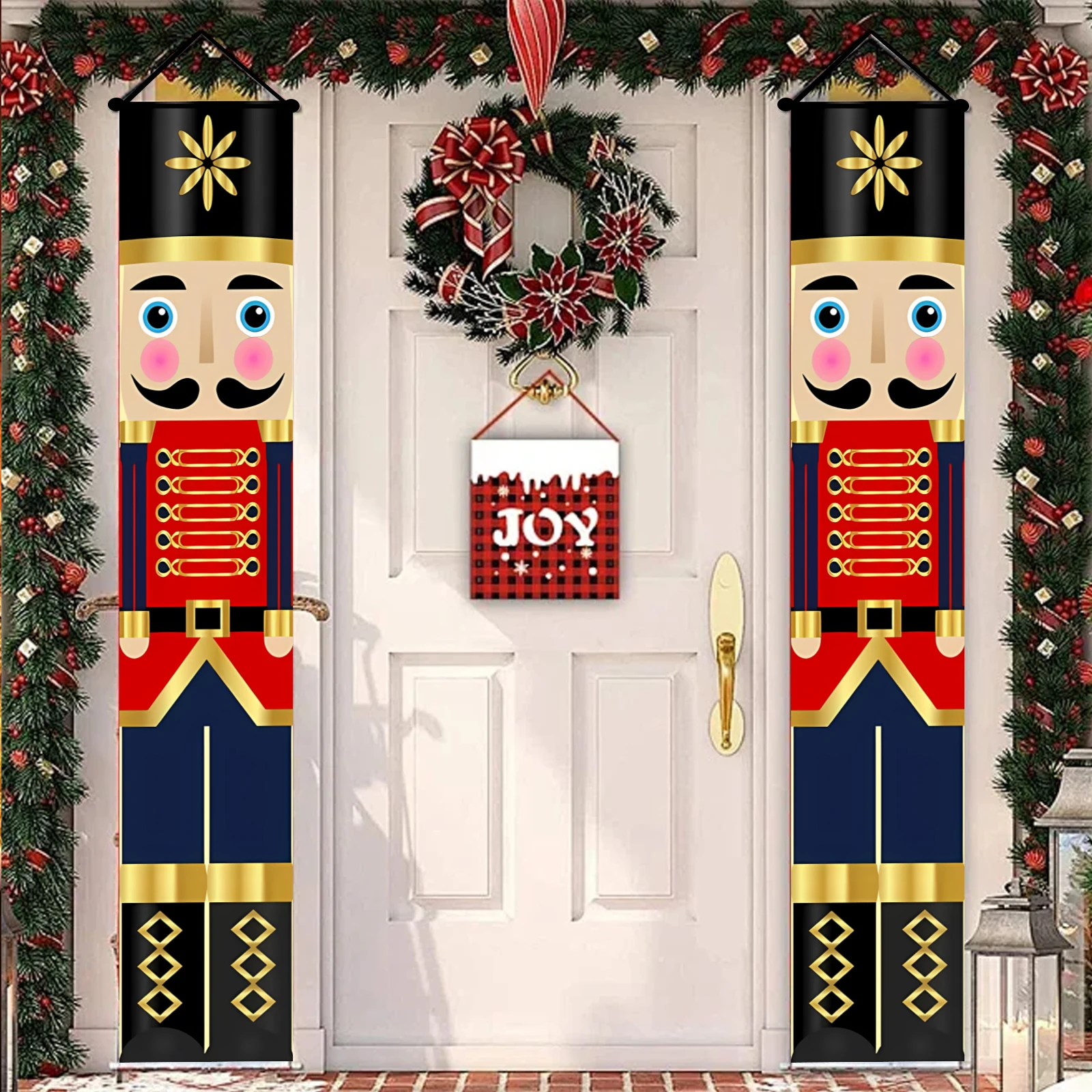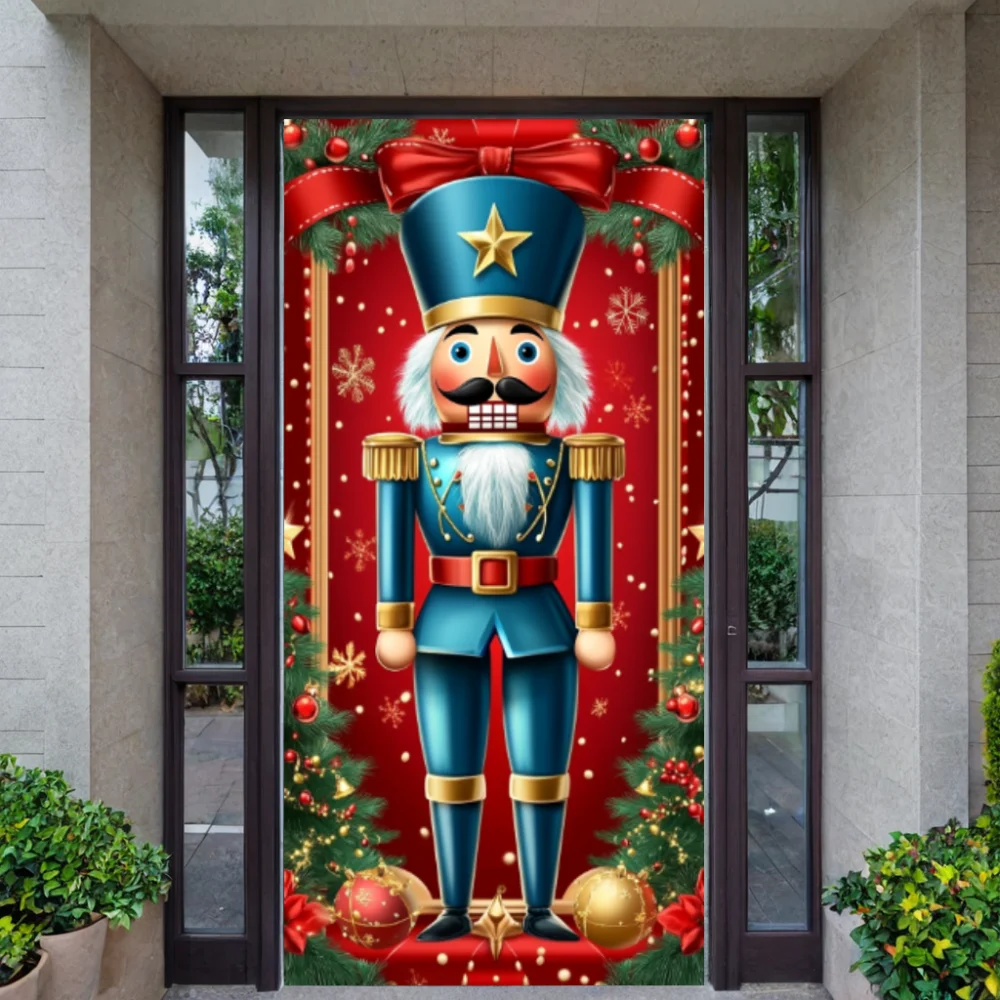 Nutcracker Soldier Lining For Christmas Doors Xmas Outdoor Decoration Door Cover For Front Door Home Christmas Party Supplies