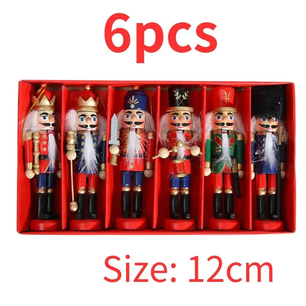 5Pcs/Set Christmas Nutcracker Soldier Puppet Wooden Handicraft Christmas Tree Pendant Desktop Ornament New Year Home Decoration