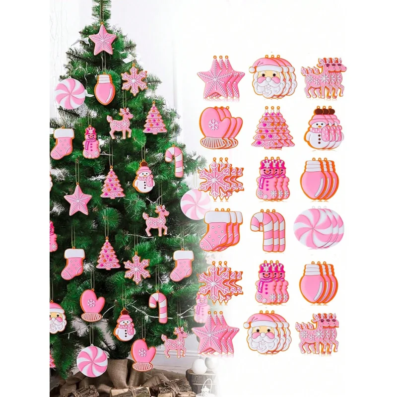 Pink Christmas Tree Ornaments Xmas Colorful Ball Gingerbread Snowflake Tree Decors Silicone Winter Gingerbread Hanging Decor  Read more