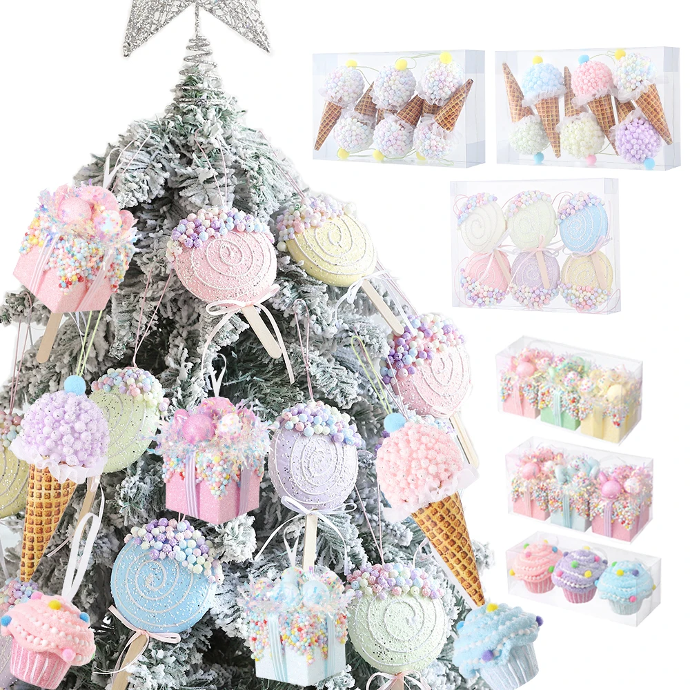 1Set Christmas Ornaments Cone Lollipop Macaroon Ice Cream Xmas Tree Balls Hanging Pendant New Year Gift Navidad Home Party Decor