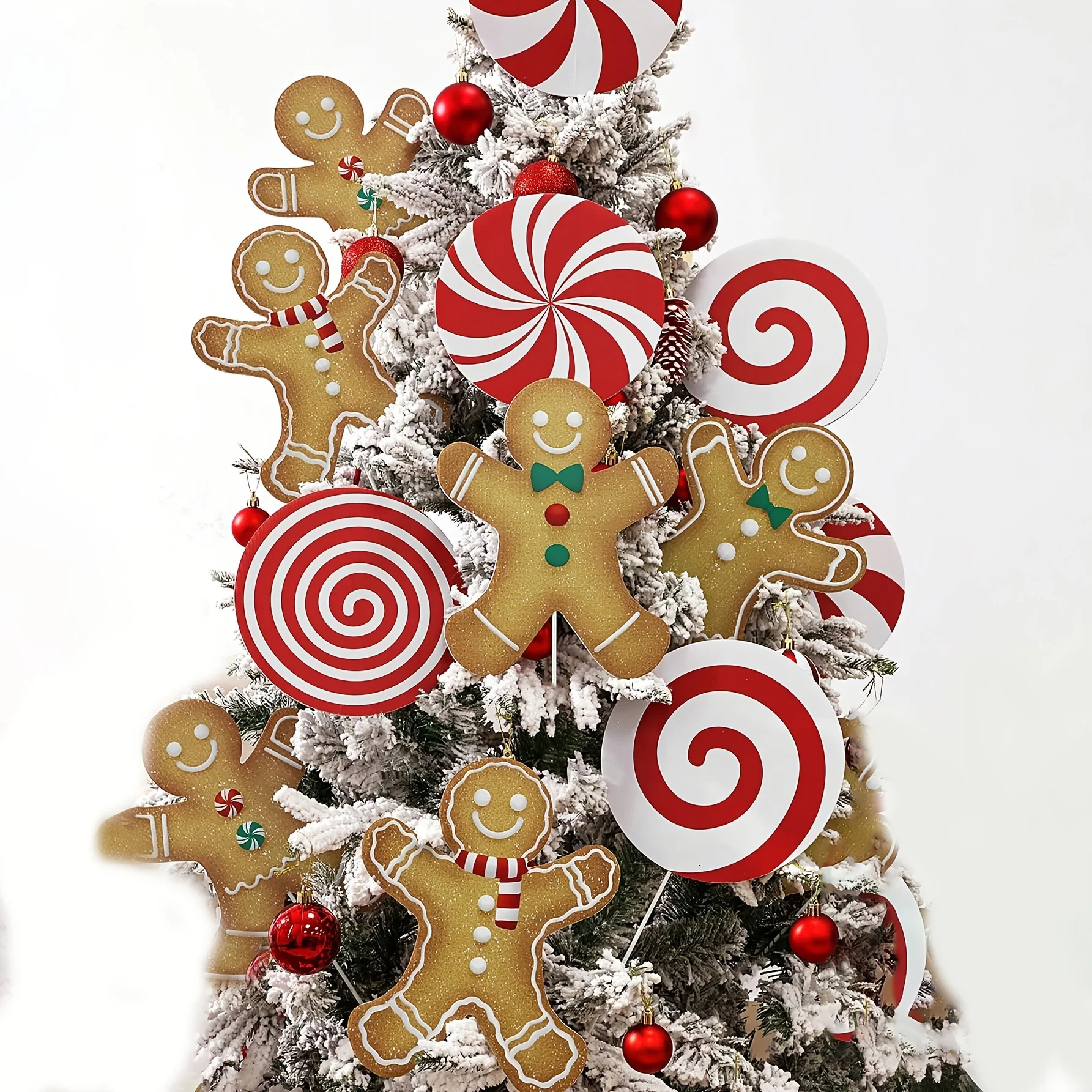 Christmas Decorations Tree Picks Large Gingerbread Man Peppermint Lollipop Christmas Picks for Tree Cute Candy Picks Ornaments