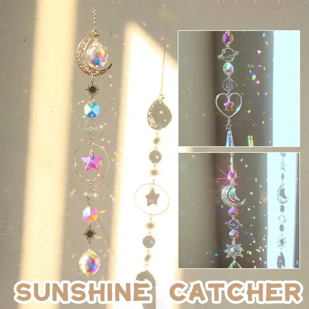 1PC Starburst Sun Catcher With Wind Chimes Outdoor Hanging Ornament For Patio Garden Balcony Decor Reflector Rainbows With Light