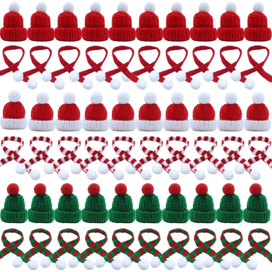 60Pcs Mini Santa Hats and Christmas Scarf Set for DIY Crafts Perfect Christmas Tree Ornaments and Snowman Doll Decorations Idea