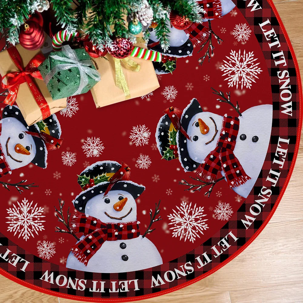 70/90CM Christmas Tree Skirt Happy 2026 New Year Snowman Santa Claus Red Xmas Tree Ornaments Tree Skirts Mat Winter Mat Decor