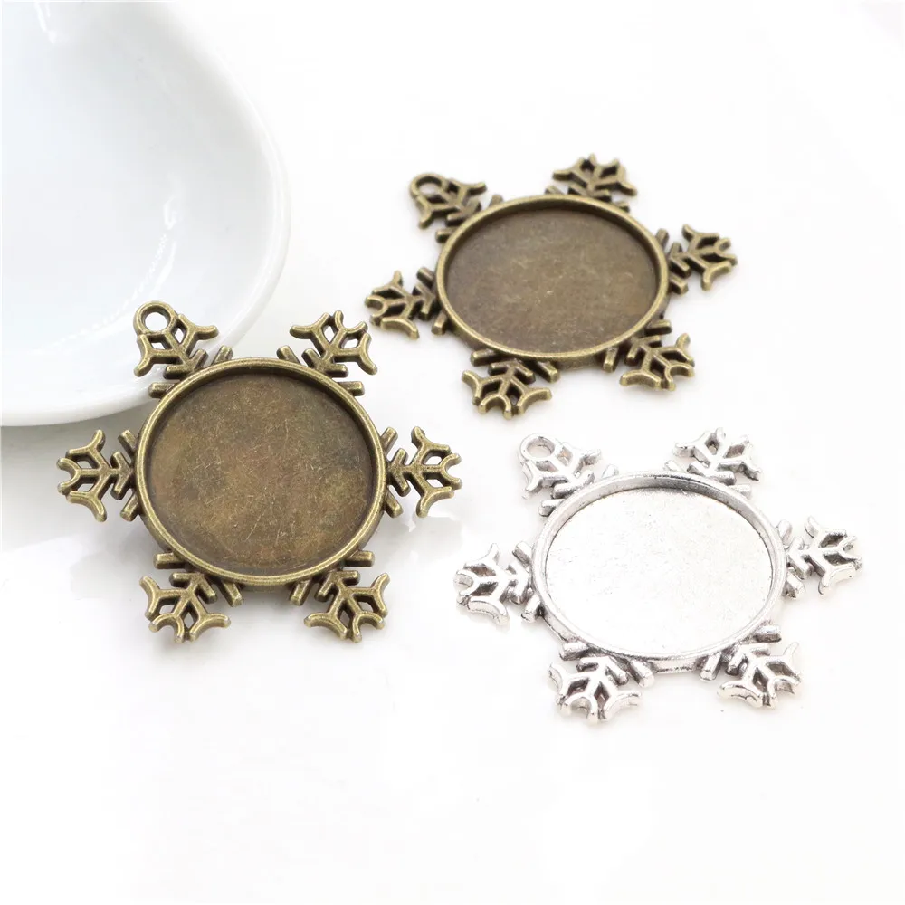 10pcs 20mm Inner Size Antique Silver Plated And Antique Bronze Christmas Snowflake Style Cabochon Base Setting Charms Pendant