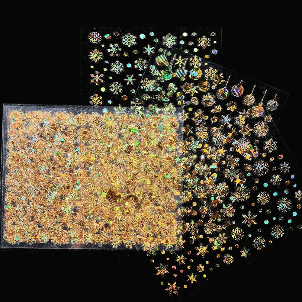 Holographic Christmas Gold/Silver Snowflake Nail Stickers Set 3D Laser Gold/Silver Snowflake Decal DIY 3D Xmas Snow Nail Slider  Read more