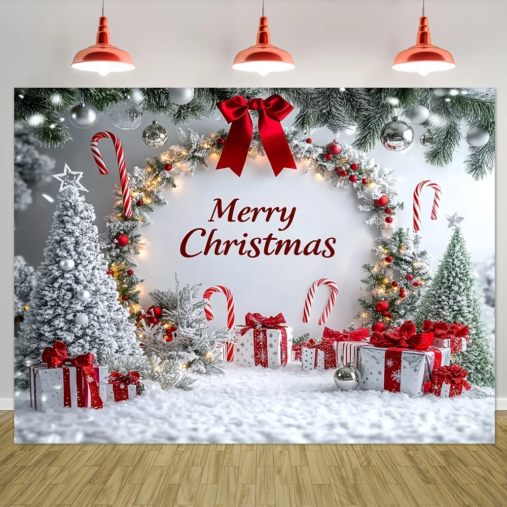 1pc Christmas background cloth, featuring candy canes and a silver wig design, is perfect for Christmas decoration